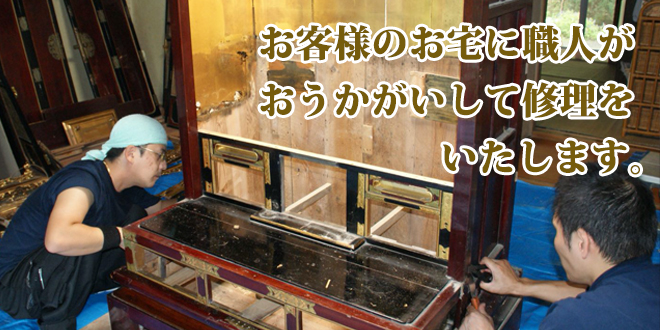 お客様のご自宅に職人が出向いてお仏壇の修理・クリーニングをおこないます。